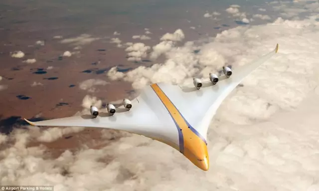 一支来自英国Airport-Parking&Hotels公司和帝国理工大学的团队在预测今后三四十年的飞行方式将会是什么样子时,提出了这架巨大的流线型飞机的构想。