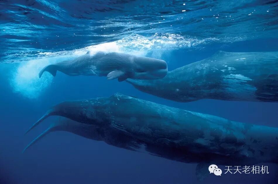 在大西洋东部的亚速尔群岛海面上,一只抹香鲸携子迁徙。