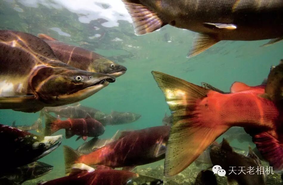 在俄罗斯堪察加半岛的奥焦尔纳亚河中,产卵鲑鱼成了交通主导者。