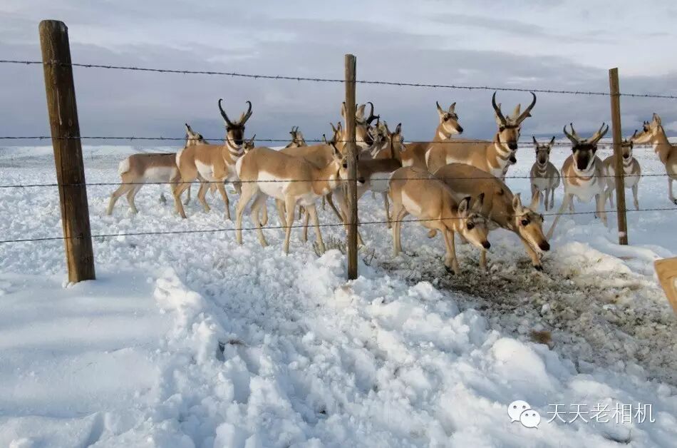 对叉角羚来说,牧场围栏是它们可能随时遇到的障碍,障碍的高度令它们很难越过,如果想要从下面挤过去,它们可能会被带刺铁丝网勒住。