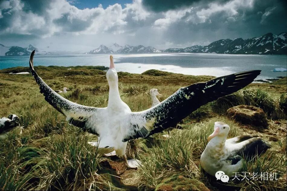 南乔治亚岛上,一只雄性信天翁在向异性展示自己近11英尺(3.4米)长的翼展。在南大洋上空翱翔数月后,它们的求爱仪式就此拉开。