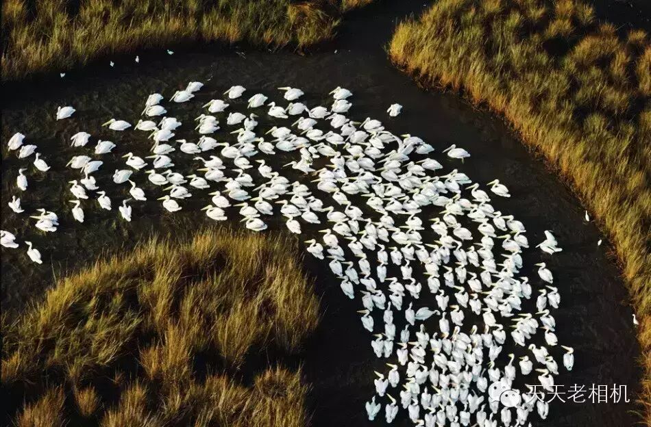 在密西西比河候鸟的必经之路上,每天都有数量庞大的白鹈鹕结队而行。这些鸟儿每年两次往来于过冬场所和繁殖栖息地。