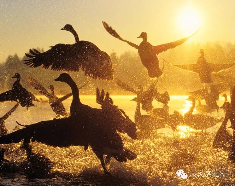 挥舞翅膀,水花飞溅,短暂停留、进食和休息之后,加拿大鹅继续起飞,北向迁徙。