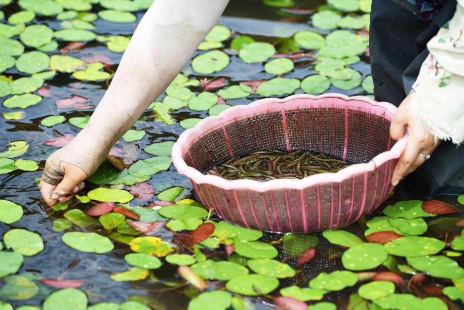 莼菜入菜,清香味美。常见的制作佳肴有:莼菜虾仁汤、莼菜肉丝汤、莼菜豆腐羹等等。