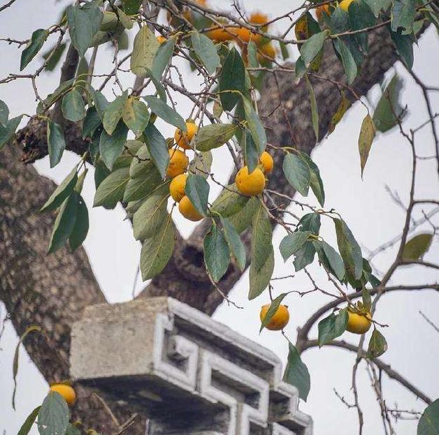 柿树耐寒、耐旱,根深树稳,培育四五年后才能结果,树龄长寿;果红喜庆,易作果脯(柿饼)储存,部分果农喜爱植几株自用,有多余的柿子随桔子一起售卖一些(柿子与蜜桔基本同期)。